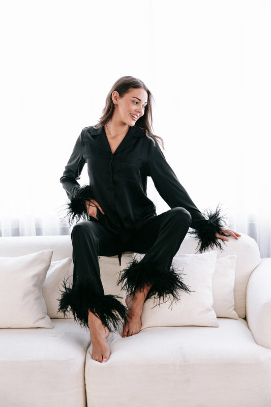 KENDAL BLACK FEATHER LUXE PJS - LIMITED EDITION
